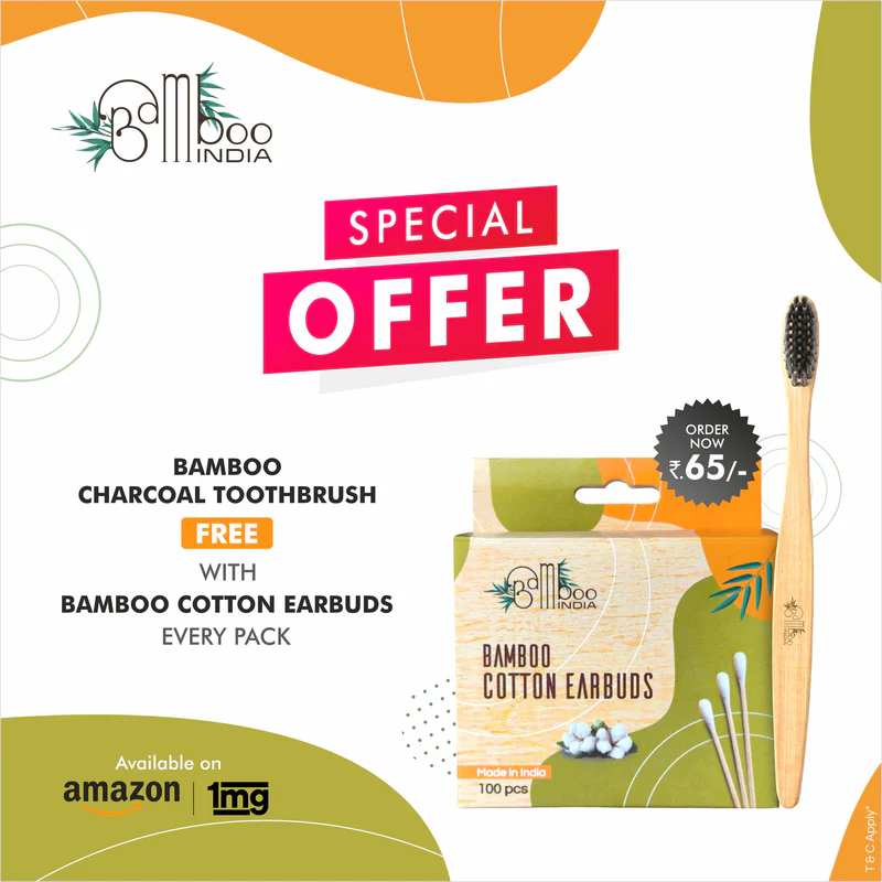 Bamboo India Cotton Earbuds are crafted from bamboo sticks, which are sustainable and renewable resources that grow quickly and require less water to cultivate than other plants. The cotton tips are made from organic cotton, which is grown without harmful pesticides and chemicals that can harm the environment and wildlife.